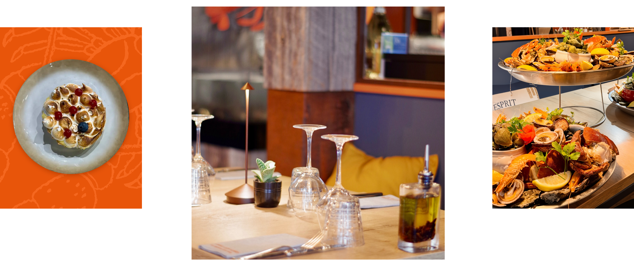 Dans une ambiance moderne aux touches d’art déco bleu marine et orange, le restaurant Trinité sur Mer propose une cuisine de marché élaborée à partir de produits frais et locaux. Poissons issus de la criée de Quiberon, viandes sélectionnées avec soin, et spécialités comme le homard grillé accompagné de frites maison au blanc de bœuf, font de ce restaurant Trinité sur Mer une adresse gourmande à découvrir toute l’année.